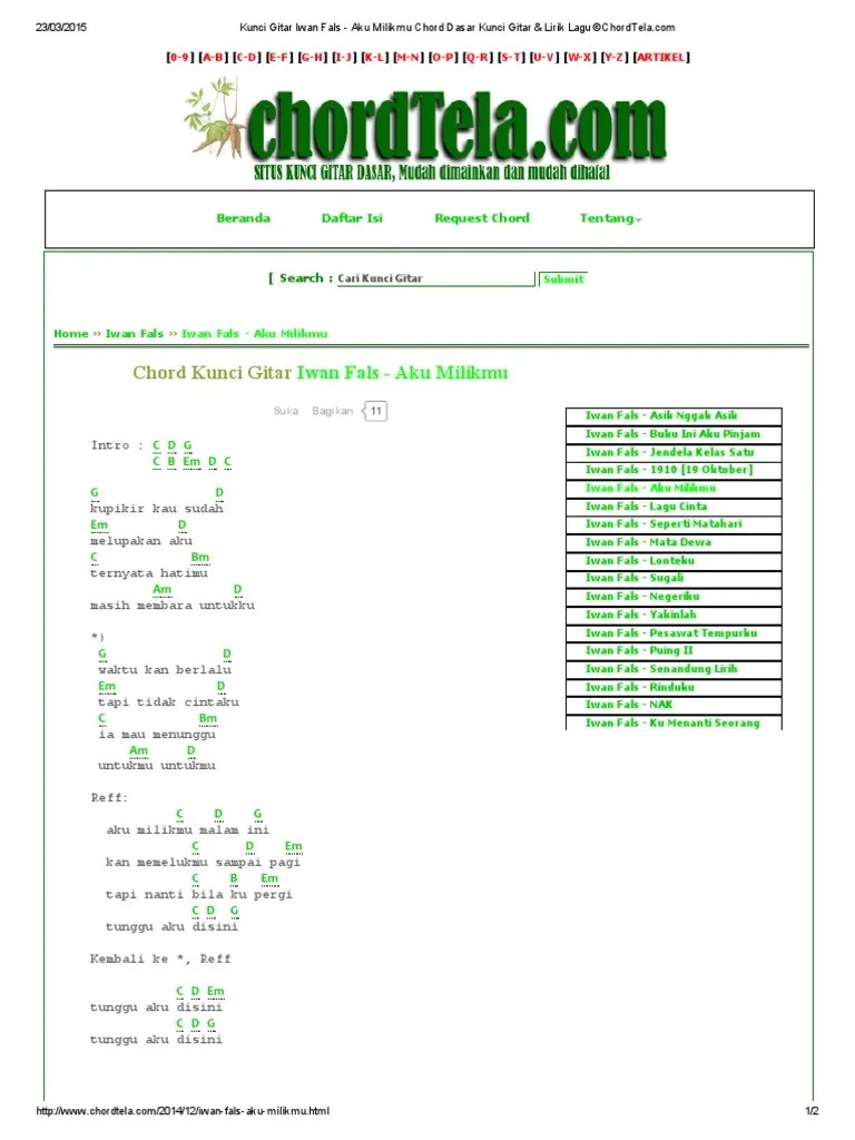 A e malam ini malam yang terakhir Ricky fm (ricky tjahyadi) tahun rilis: D a kalau mimpi bale bantal nona e. 1996 (*) c f g am aku sadari kau harus pergi Sgemua berakhir, segaamla yang terjalin kau embawa mimpiku, pergdi dan sgebuah rasa, telah amjatuh terurai beremsama mimpiku, disindi. Salah satunya, mendapatkan malam lailatul qadar dan . Bm inilah waktu yang tepat. C f g am am/g f g c (*) c f g am aku sadari kau harus pergi. G akan pergi lama kembali. E a biar beta selalau ingat se. G malam terakhir bagi kita. intro bm g a em 3x. G am rasa rindu di dada.